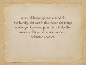 Um Alchymie zu betreiben, muß man die Natur verstehen. Künstliche fiktive Wissenschaften in der öffentlichen Lizenz (Schulphysik, Schulchemie, Schulmedizin usw.) haben hier keine Chance und führen in der Alchymie zu nichts.